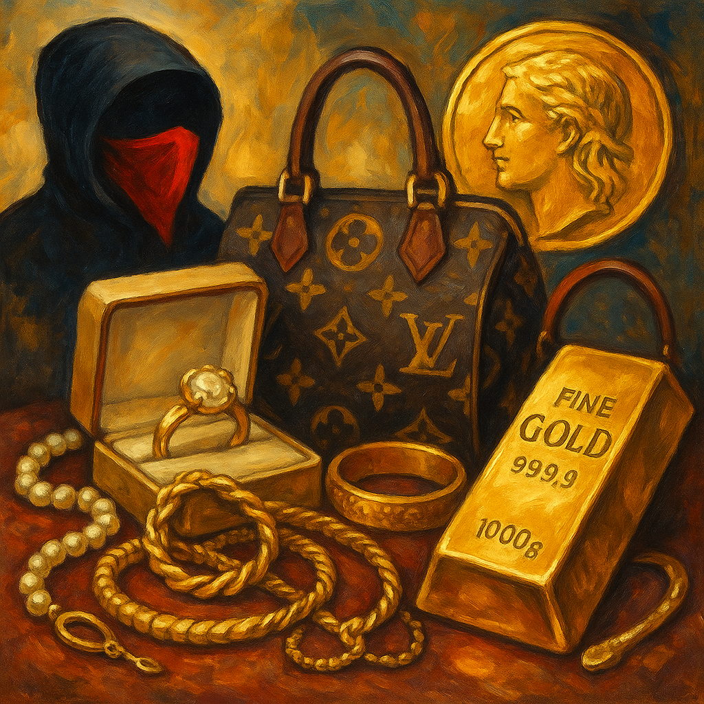 - 高価な貴金属や金(ゴールド)は極力持ち歩かない、見える場所に出さない。