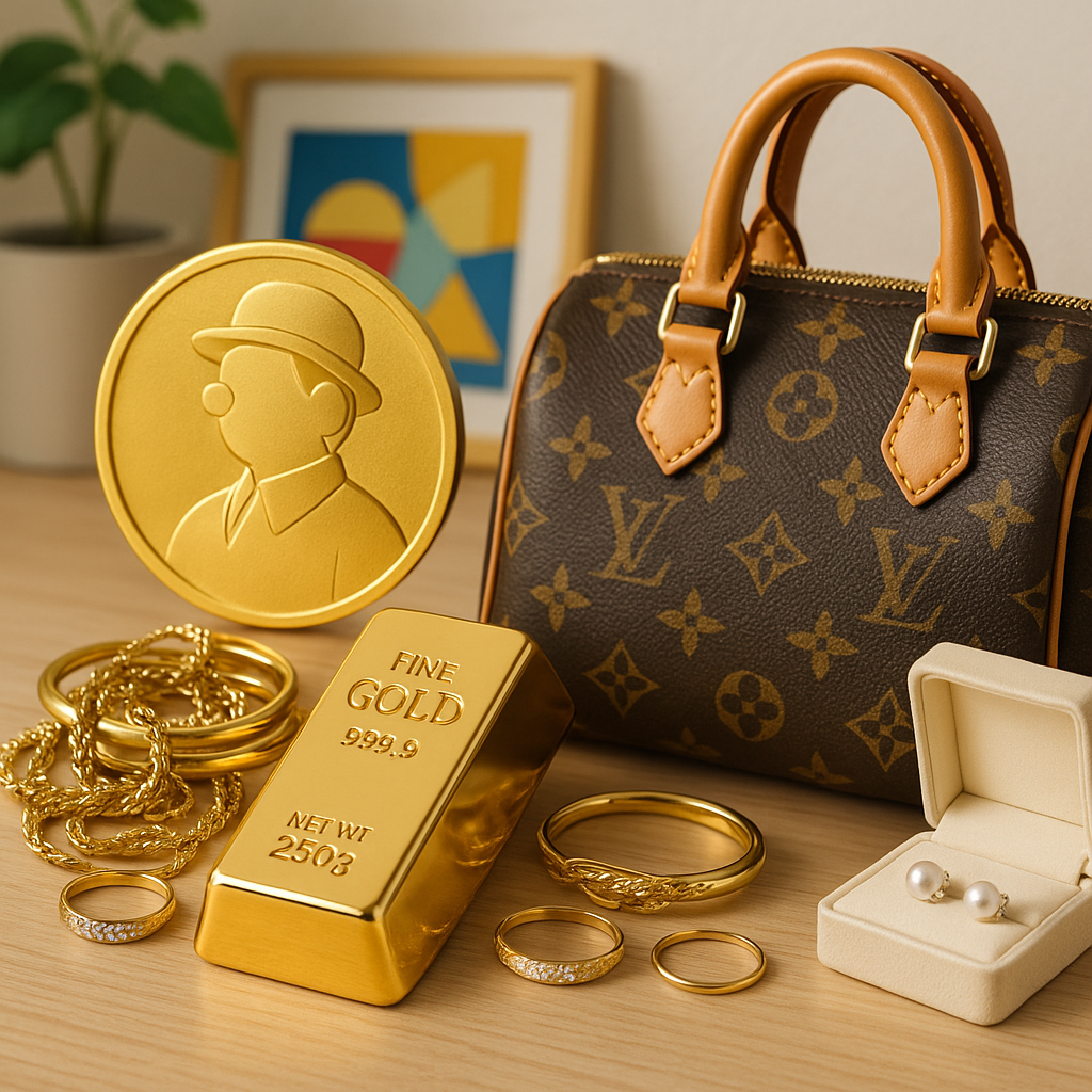 保管は直射日光と湿気を避け、革は乾拭き、金属は強研磨を避けるのが無難。無理なクリーニングで金メッキを落とすと価値が下がることがあります。貴金属とブランド品を一緒に保管せず、個別の袋で分けるのも有効です。